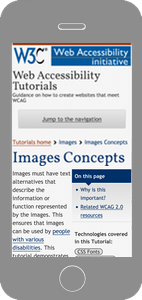 Consider how page information is presented in different sized viewports, such as mobile phones or zoomed browser windows. Position and presentation of main elements, such as header and navigation can be changed to make best use of the space. Ensure that text size and line width are set to maximize readability and legibility.